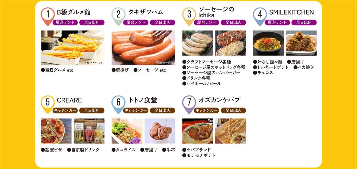 ページトップへ ページトップへ ページトップへ B級グルメ館/縁日グルメetc タキザワハム ソーセージのIchika SMILE KITCHEN CREARE トトノ食堂 オズカンケバブ B級グルメ館/縁日グルメ ソーセージのIchika SMILE KITCHEN CREARE トトノ食堂 オズカンケバブ